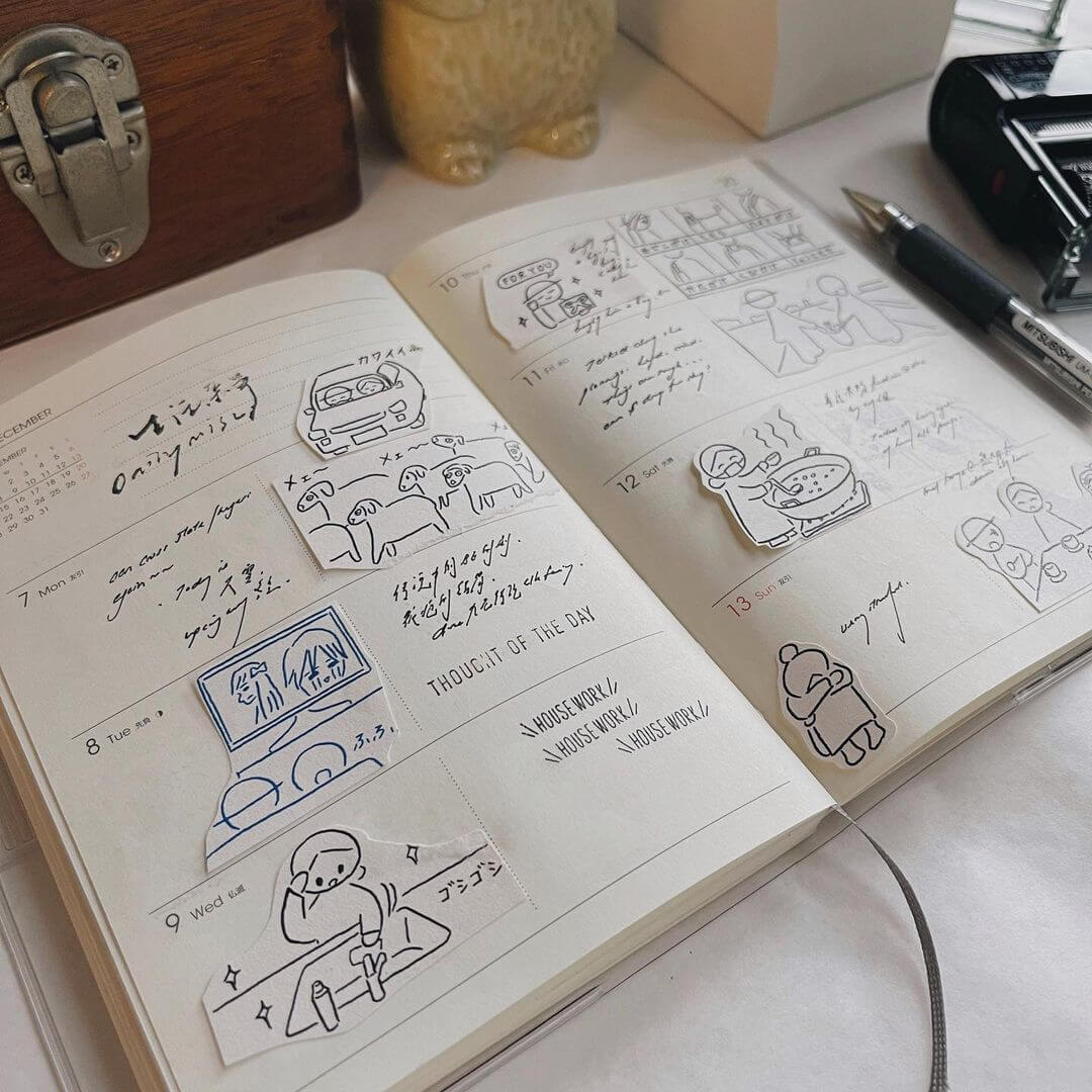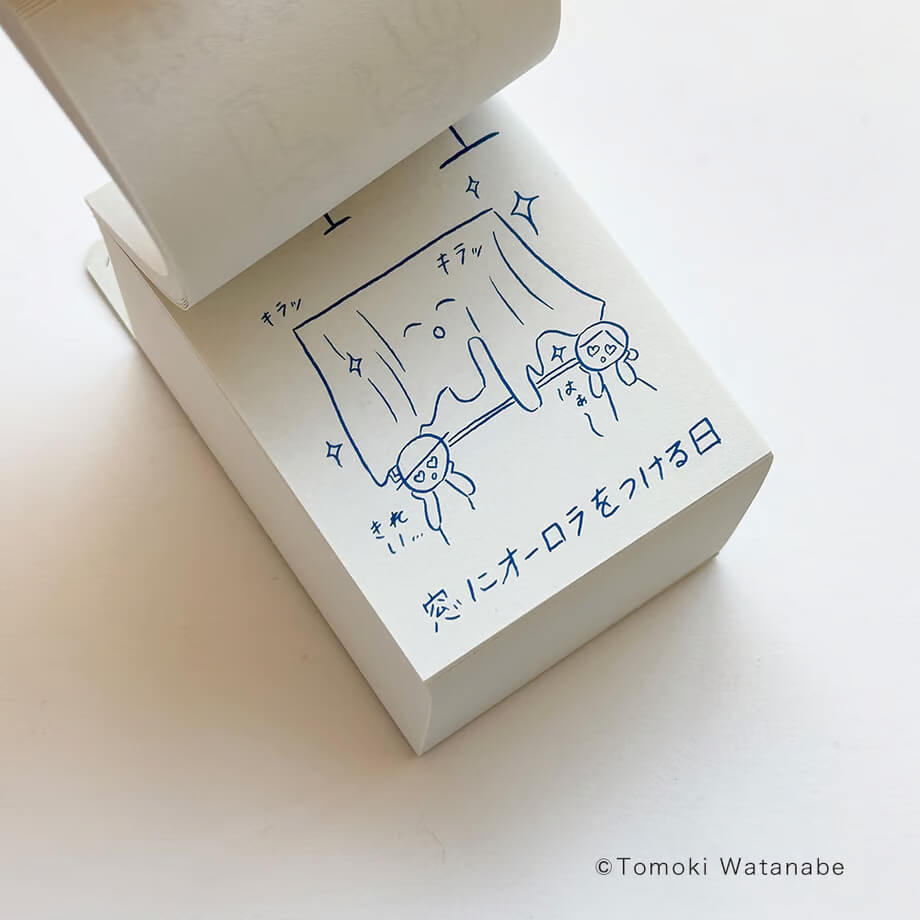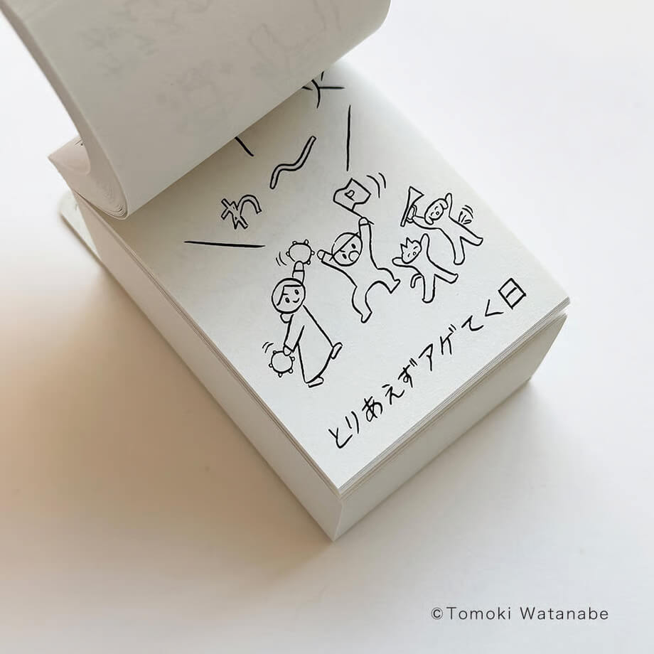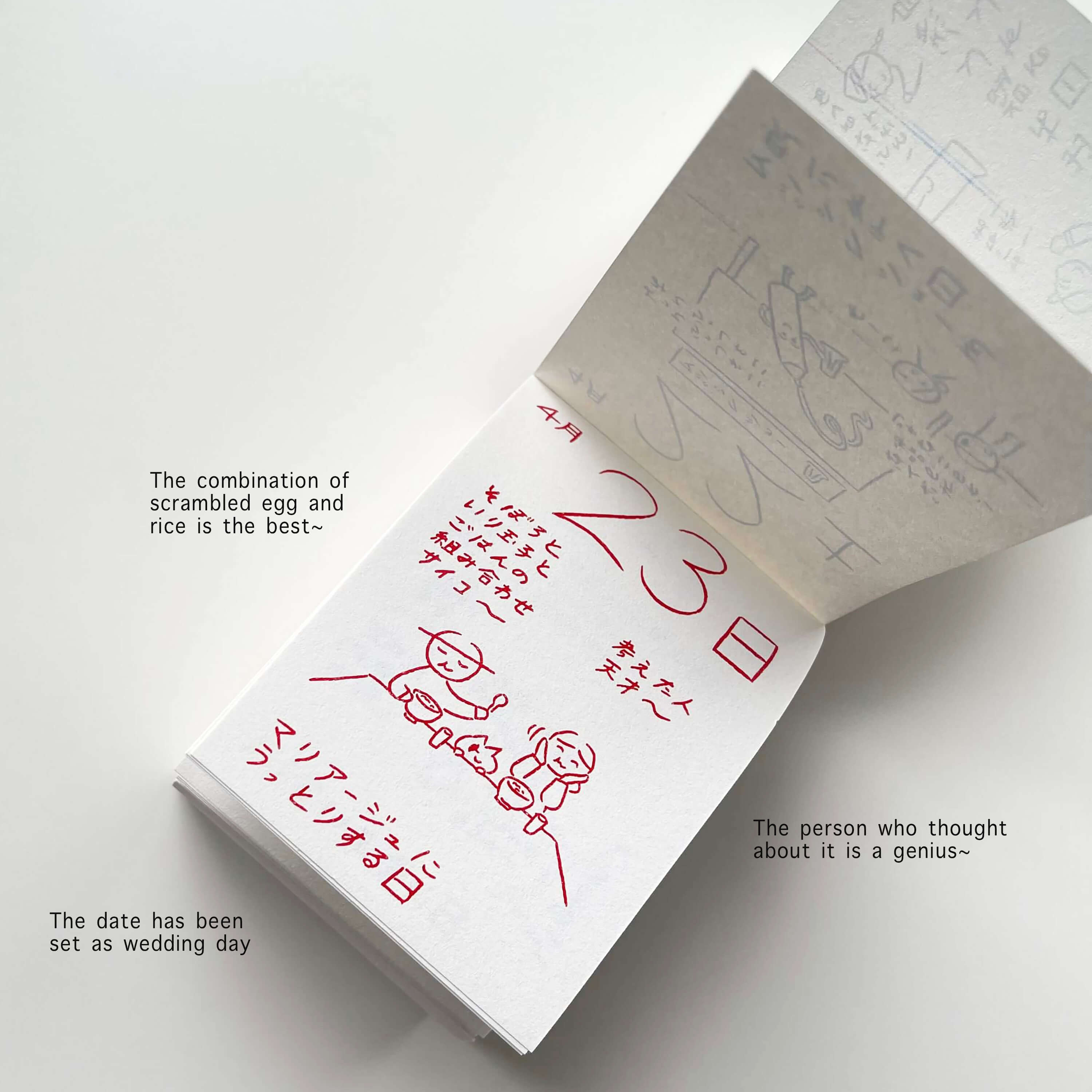 Each day unveils a story of Hibino and family, ranging from a little crazy to a little heartwarming, accompanied by captivating illustrations by Watanabe. His unique and humorous illustrations allow us to have a good start for the day and make us anticipating for the next day!