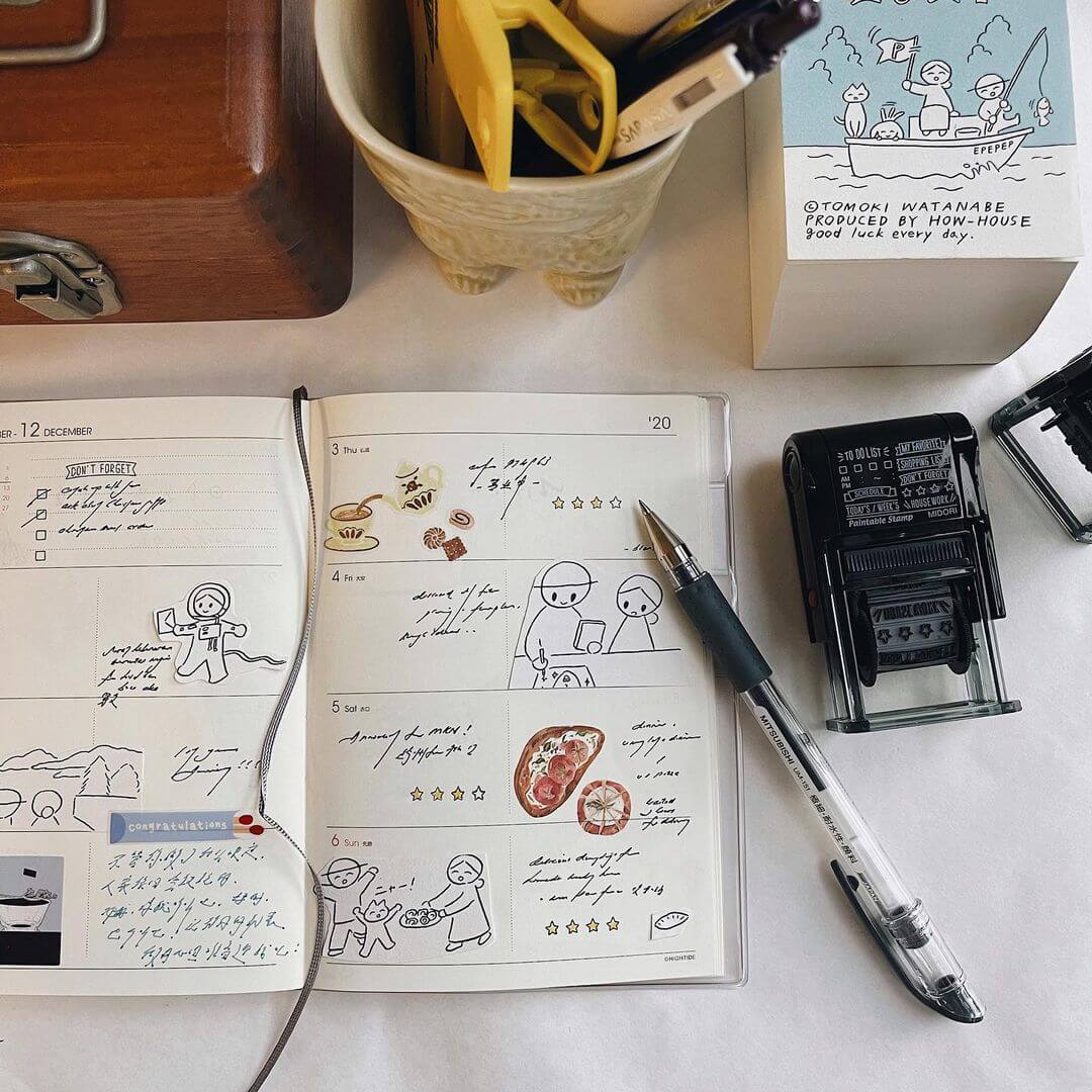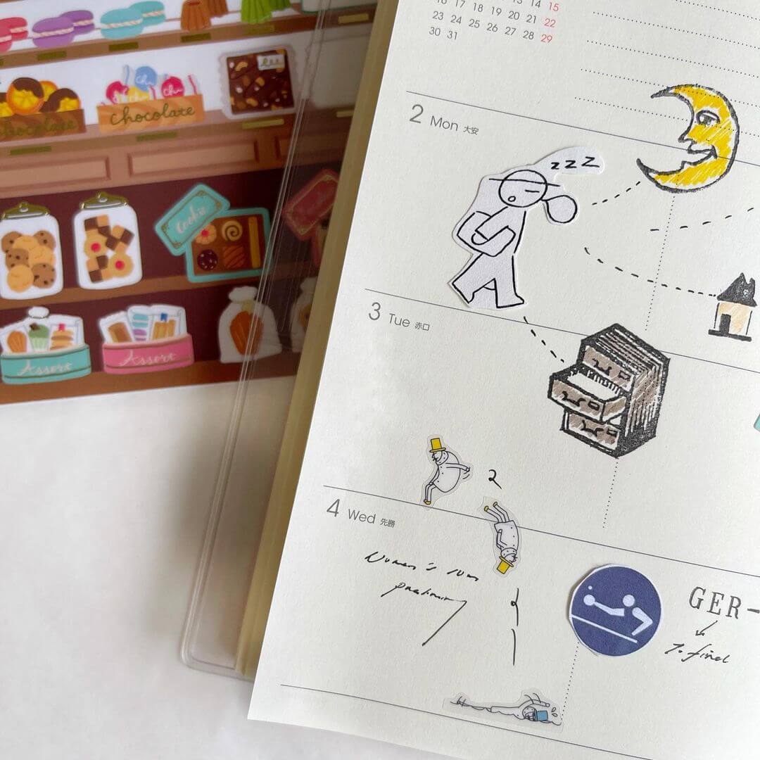 The font colours — blue for Saturdays, red for Sundays, pink for holidays, and black for weekdays—guide your week, while the ample free space on every page invites personalisation through writing, drawing, or adorning with stickers and stamps, making it your daily diary or creative canvas. Sending it along with your outgoing mail might just bring a smile to someone’s face ;)