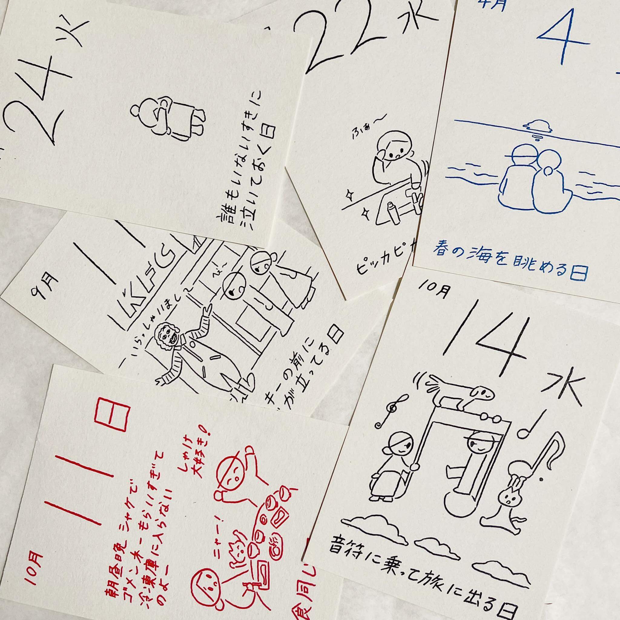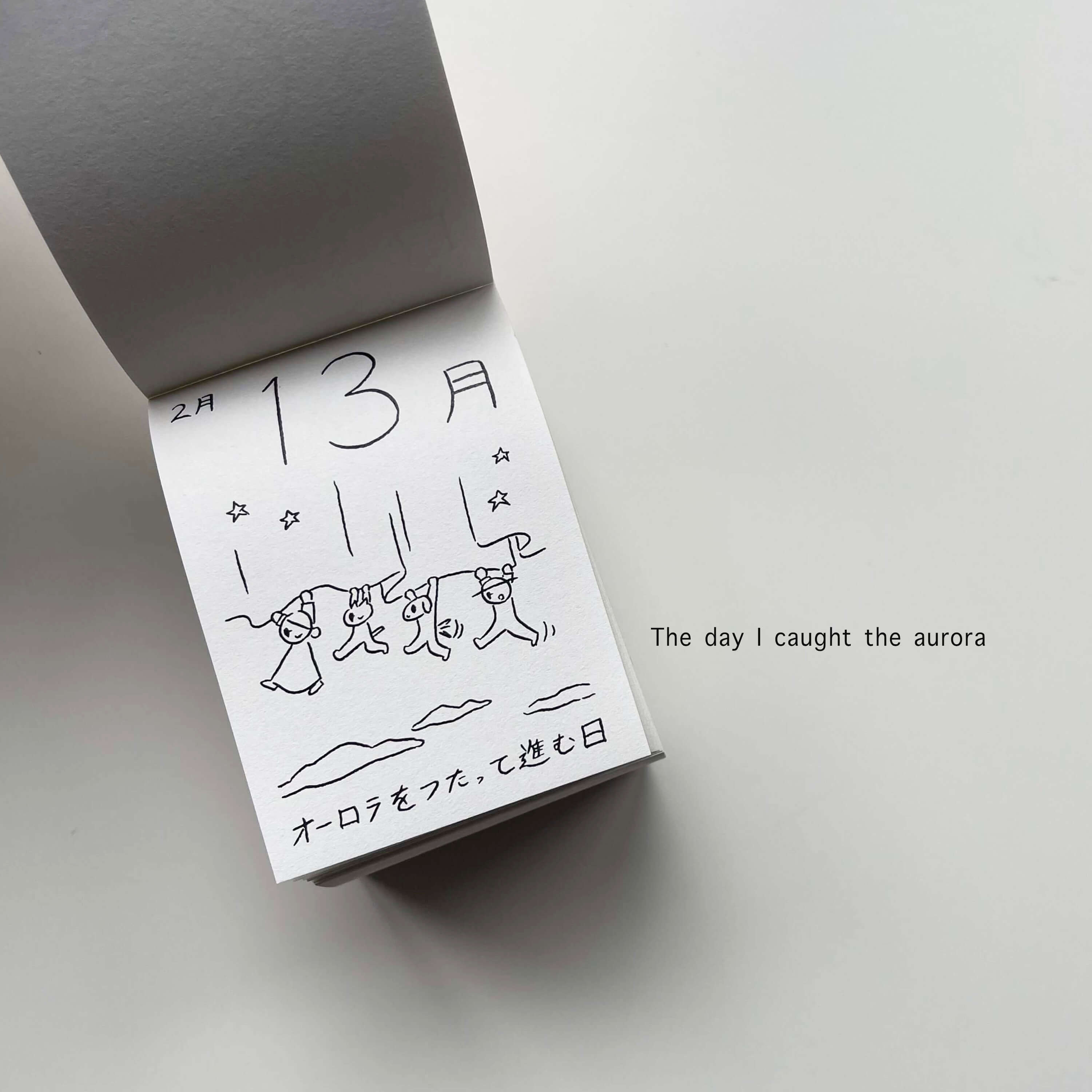Within the calendar, encounters like ‘a day to release birds’ or ‘a day under a shooting star’ intrigue us—what will tomorrow bring? Turning each page marks the start of an exciting new day!