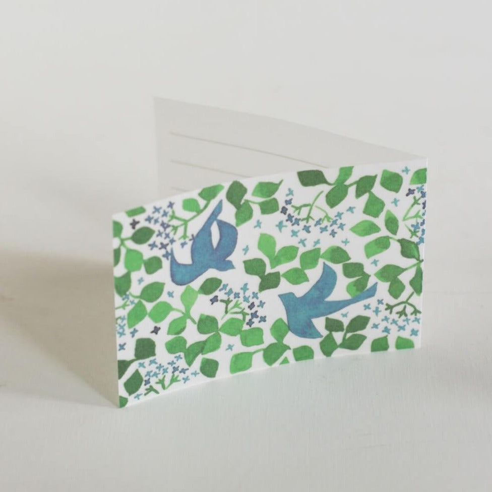 These two-fold cards possess a delightful transparency and feature patterns inspired by natural landscapes and local plants. The design artfully depicts a townscape that seamlessly connects from one small garden to another. As the flowers bloom, the boundaries fade, creating the illusion of a sprawling garden.