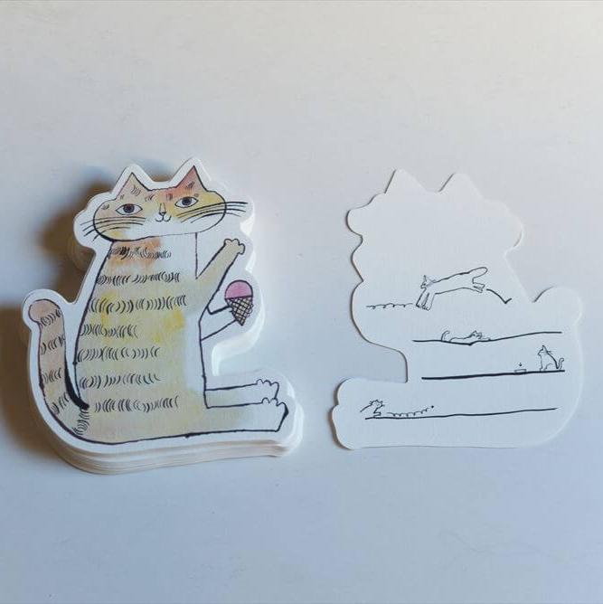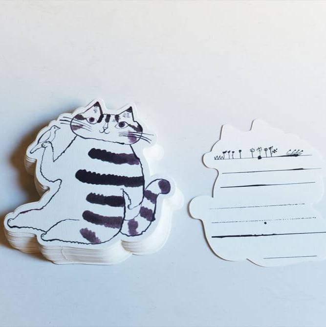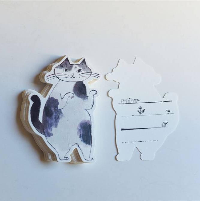 These whimsical cat-shaped die-cut cards by Toranekobonbon capture the playful and unique spirit of each feline. Perfect for letters, journaling, gift-wrapping, or display, each card features adorable illustrations on the front with subtle line art on the back for notes or small messages.