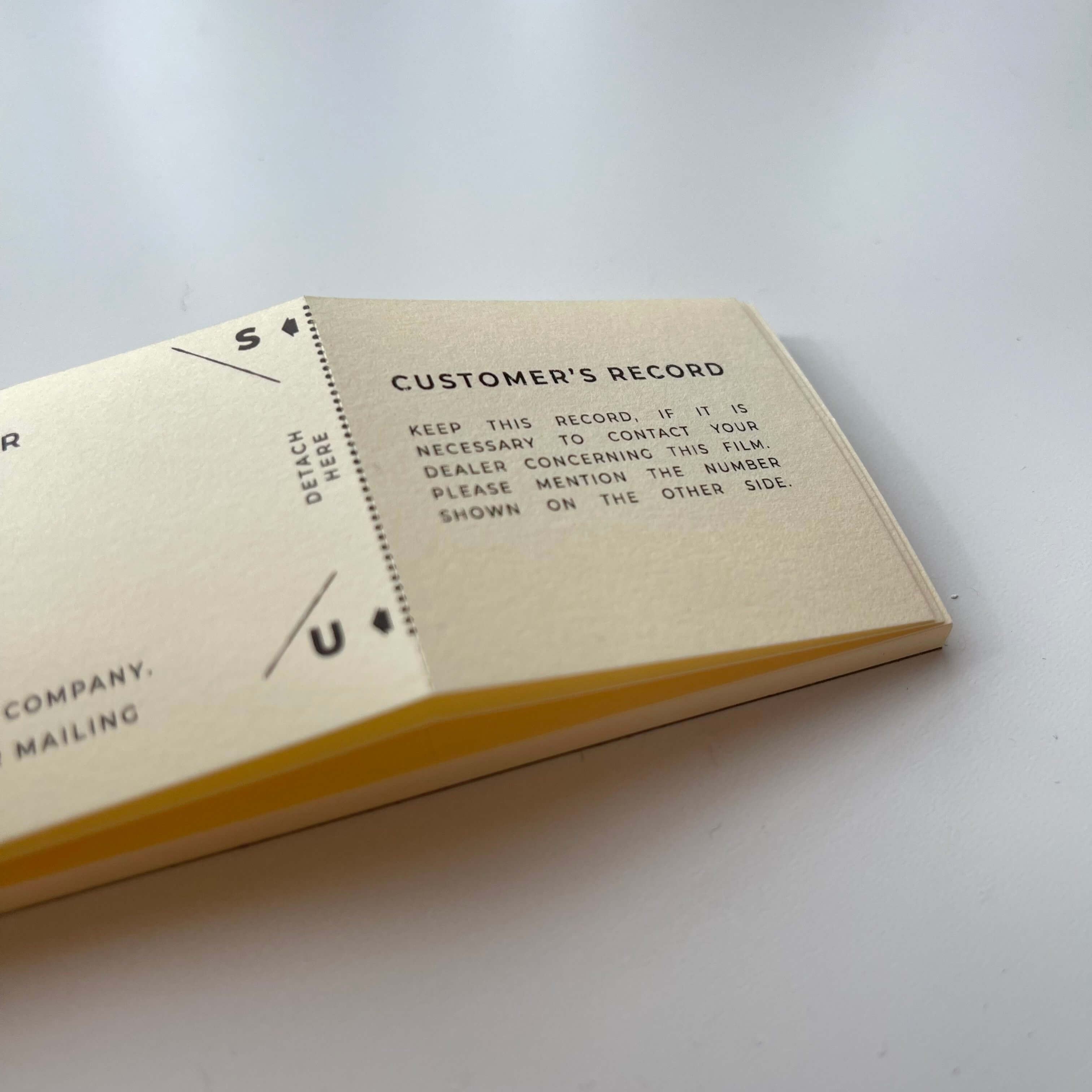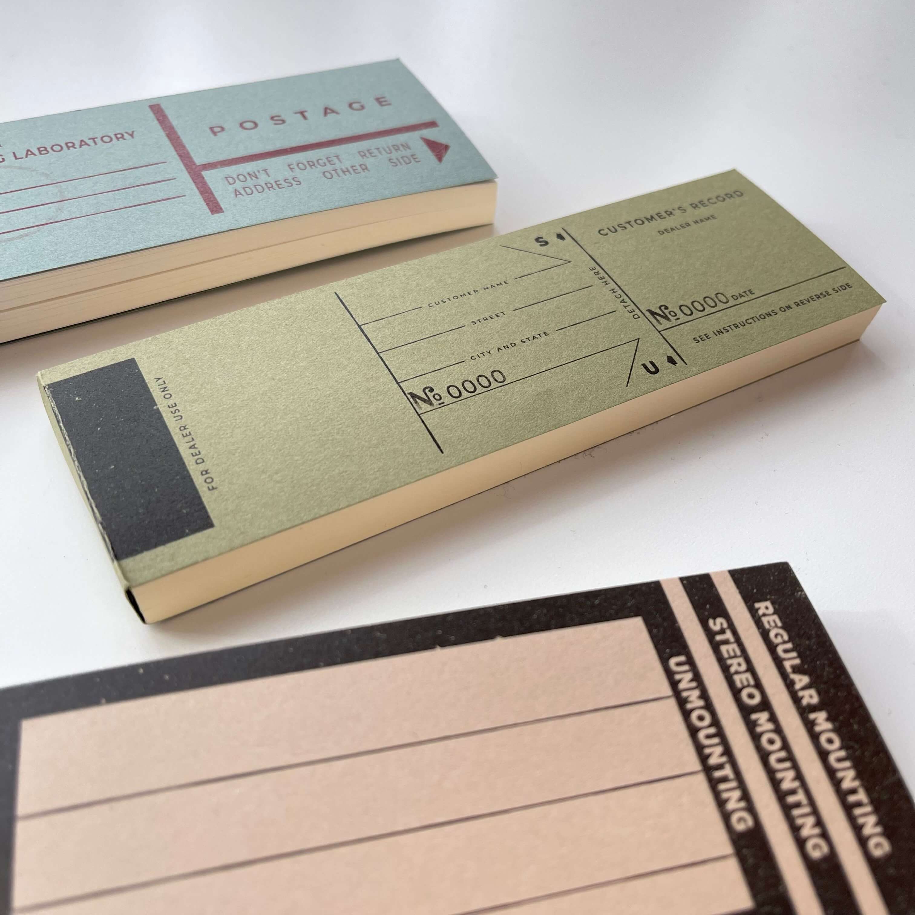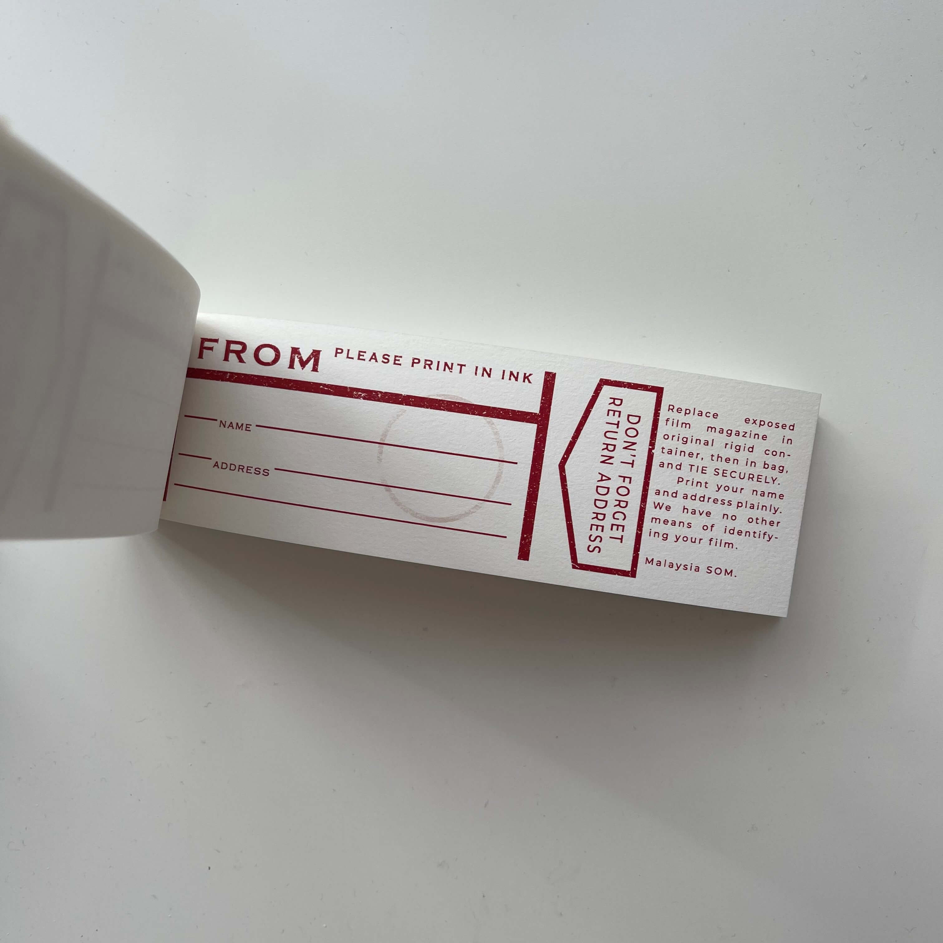 Inspired by the tags that attached to the film processing mail bags during the old days, these memo pads are carefully designed with lots of thoughts and attention to details. Back then, the tags were used to record the customer's details when dropping off the films at a camera store or by mail.