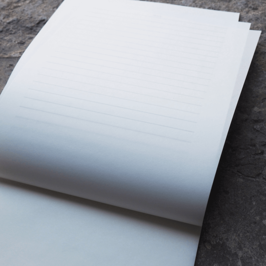 This 50 sheets letter pad features high-quality, feather-resistant papers. The thin, translucent lightweight onionskin paper is very similar to tracing paper. This allows the use of an included guide sheet to ensure writing stays in neat, straight lines. The guide sheet is printed on one side with horizontal lines spaced approximately 9 mm apart and printed on the other side with vertical lines spaced approximately 10 mm apart.