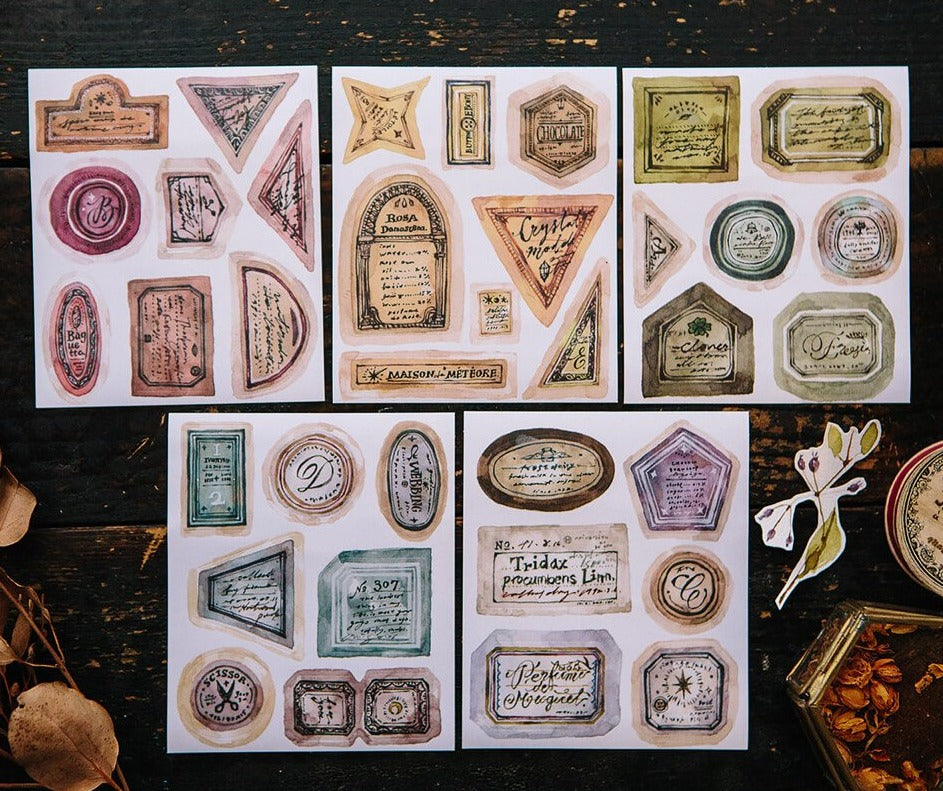 These labels look amazing when lettered with handwritings, typed on with an old typewrite, stamped with old letter fonts or just leave them as they are. Whether on your journal page, message card or gift card, these vintage label stickers would become expressions of visual elegance.